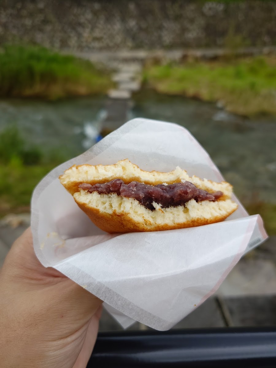 Even those who drop by after a day of family fun, like ‘栗きんトン後輩’, find joy in a refreshing dora-yaki after a day spent playing by the river. The addition of fruit pieces in their apple tea brings a refreshing touch, making it a delightful drink to accompany your snack.